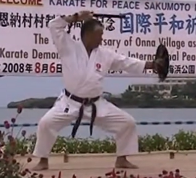Unlike some other kobudo systems that use a machete or short sword with the tinbe, Ryuei-ryu traditionally pairs the shield with a short staff or baton instead of a blade.